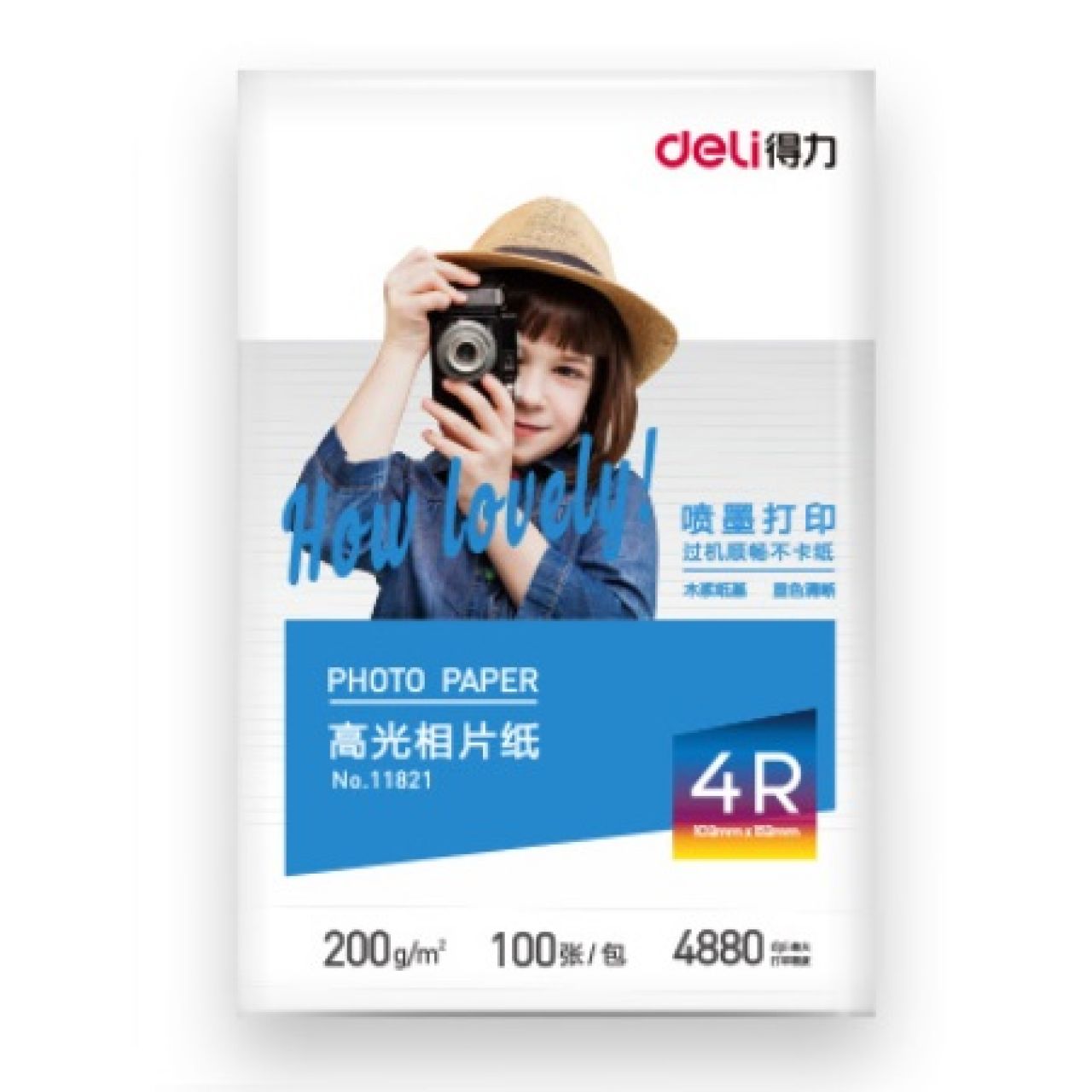 首页> 办公用纸> 专用纸> 得力 11821 高光 相片纸 6英寸 200g 100张装 102mm×152mm