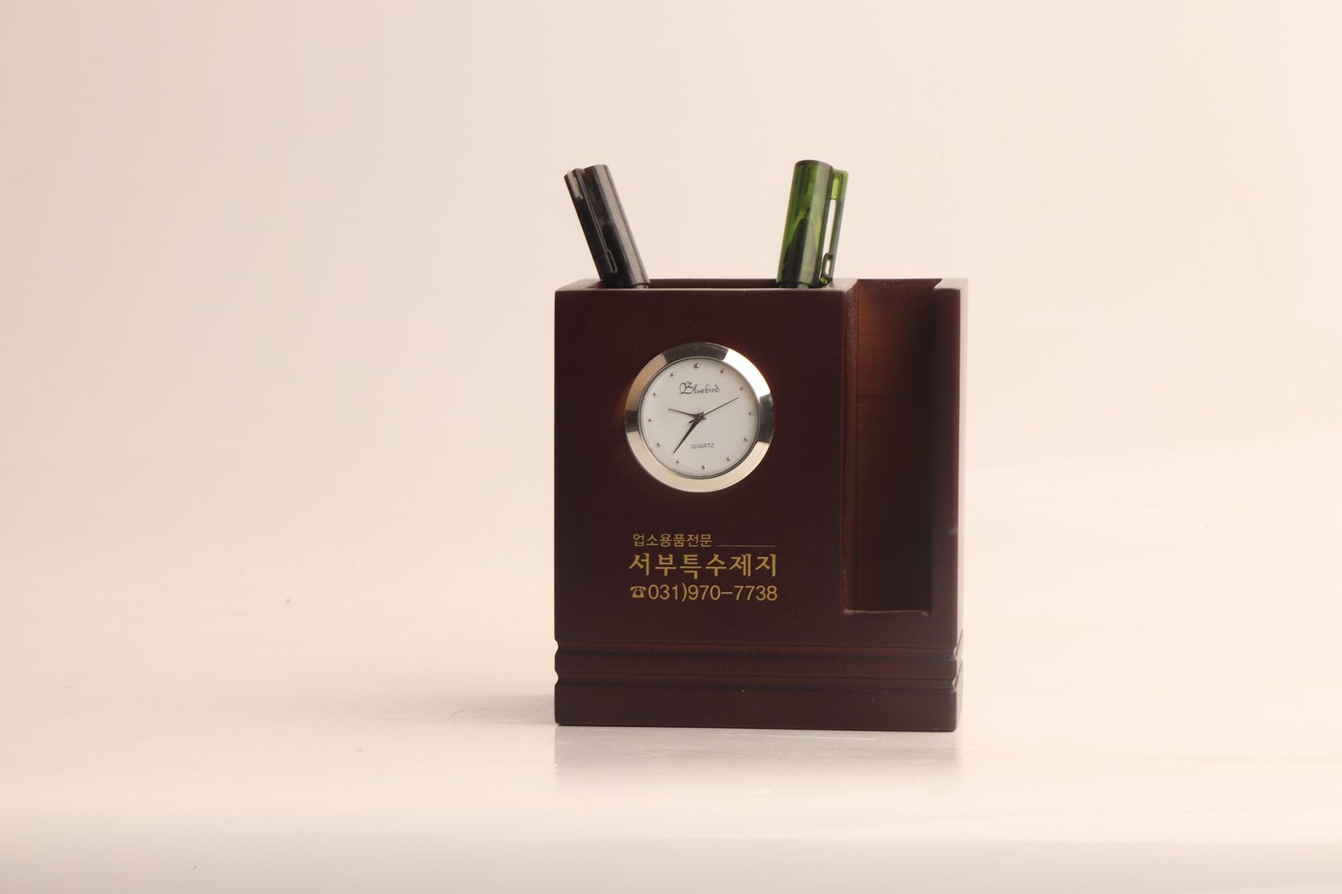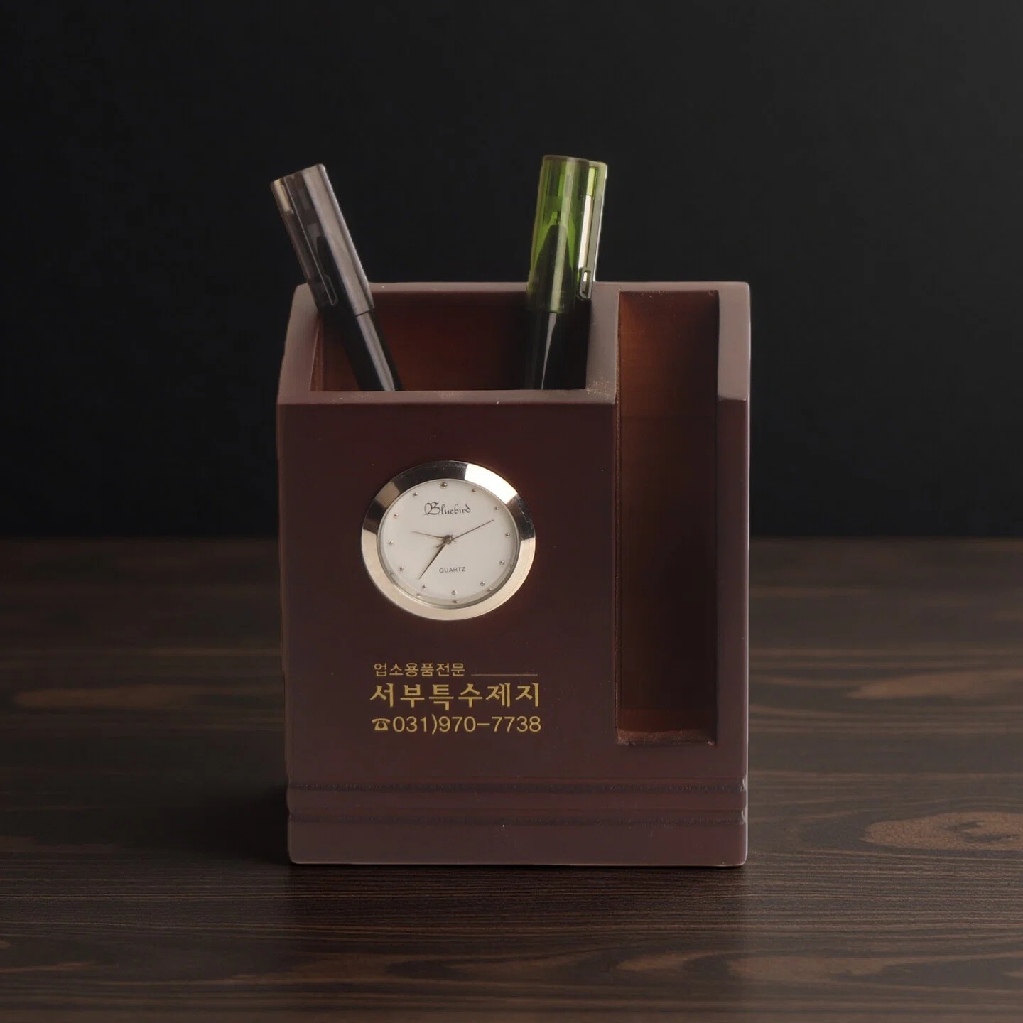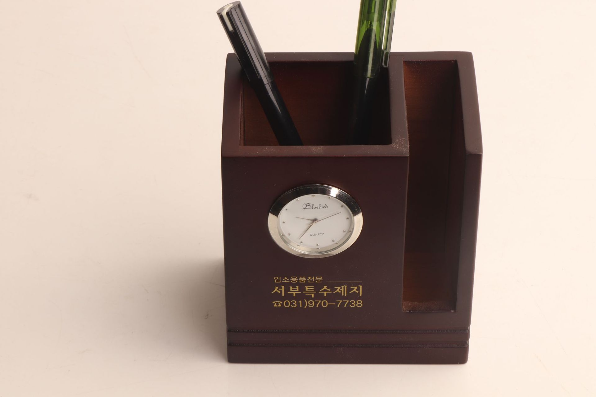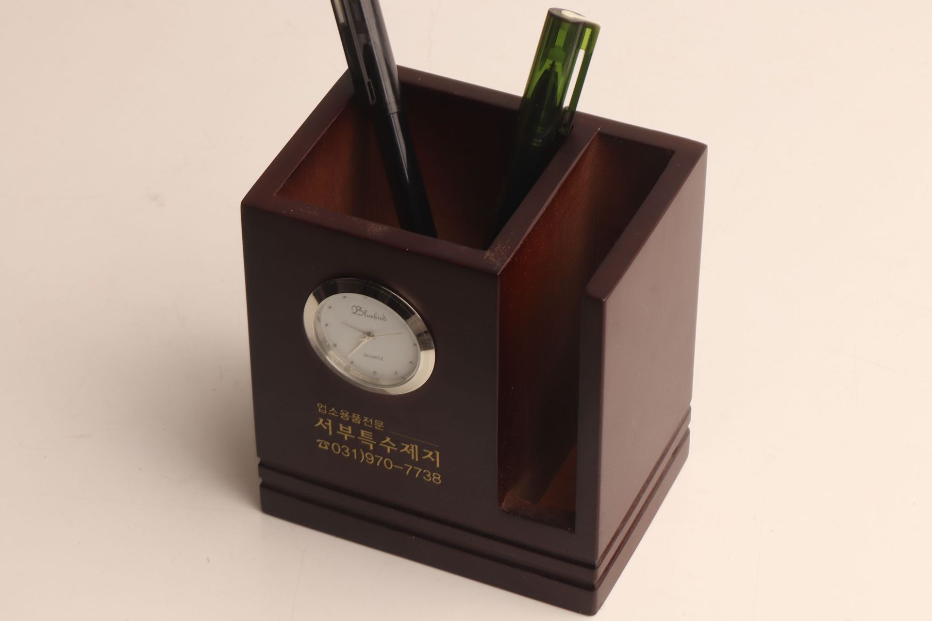 实木简约带钟笔筒创意时尚桌面商务办公文具收纳盒logo