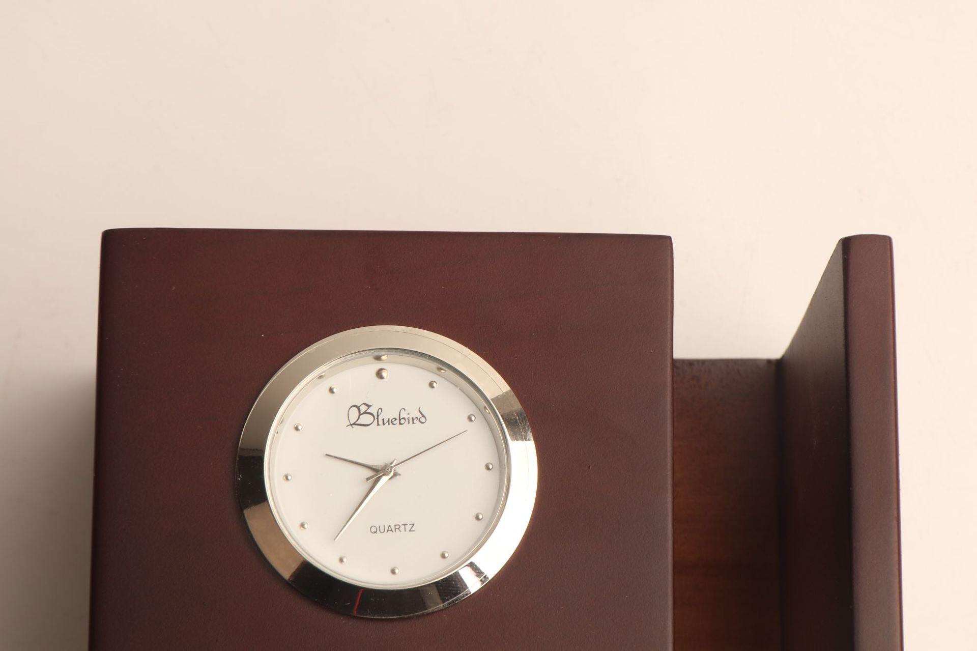 首页> 日常文具> 笔筒> 实木简约带钟笔筒创意时尚桌面商务办公文具收纳盒logo
