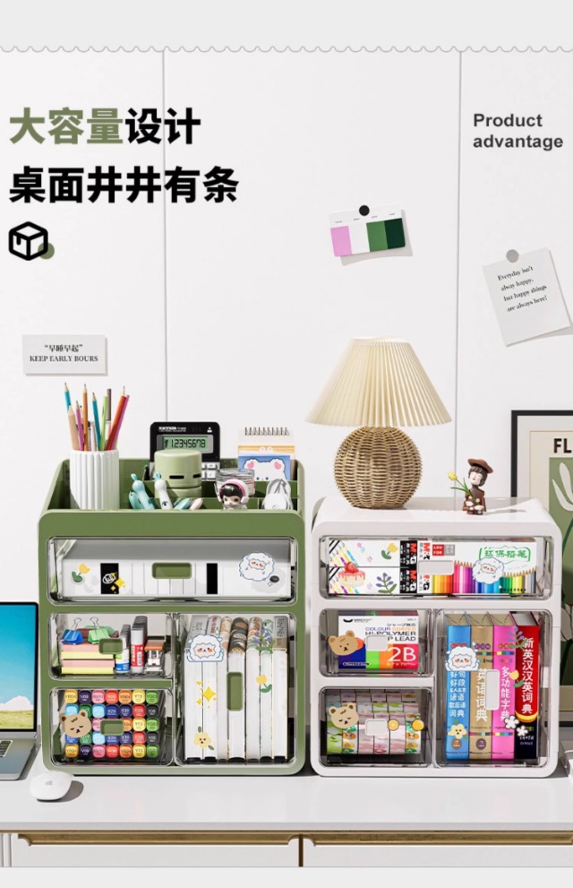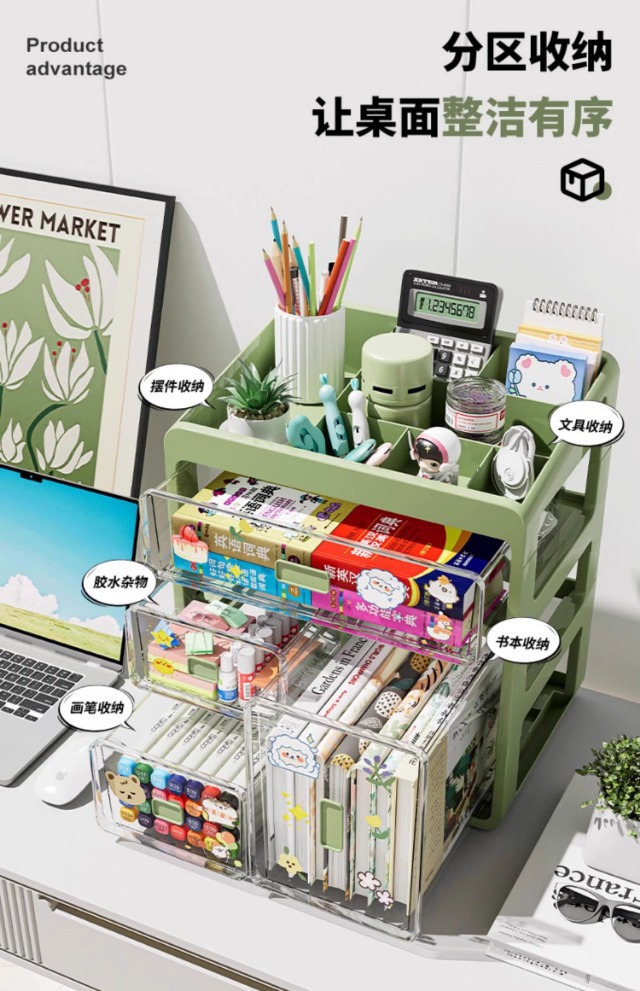 桌面收纳盒抽屉式办公室工位文具杂物置物架书桌