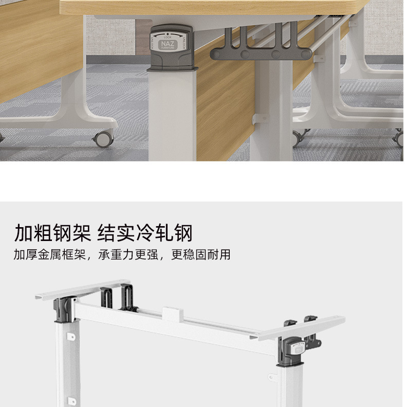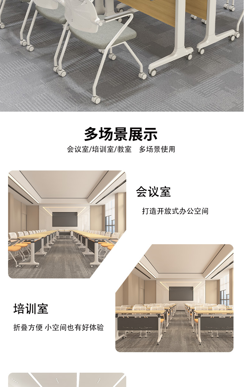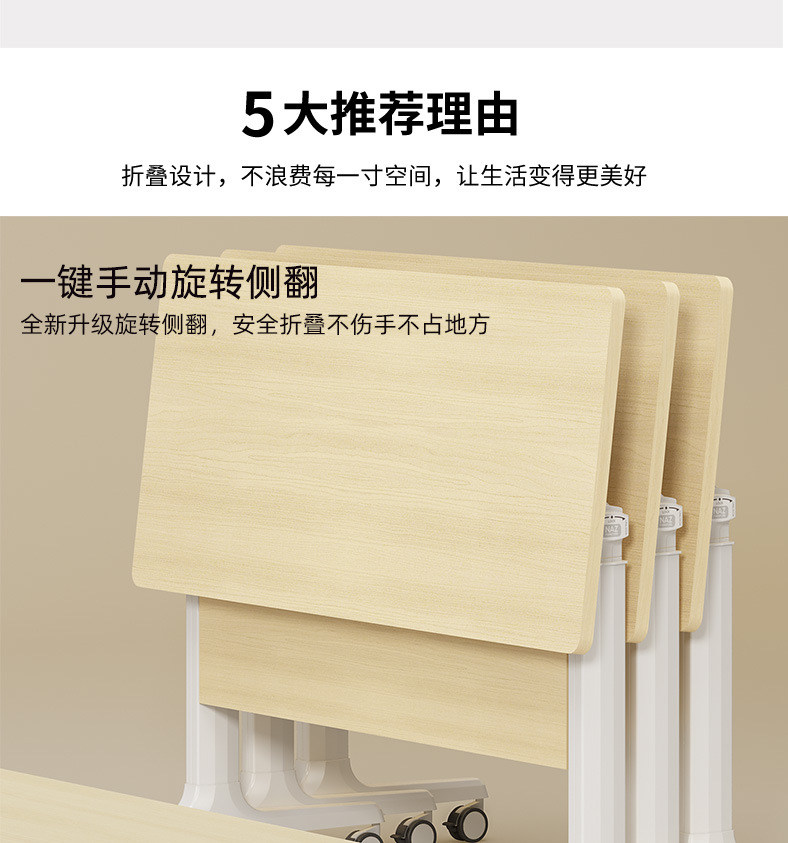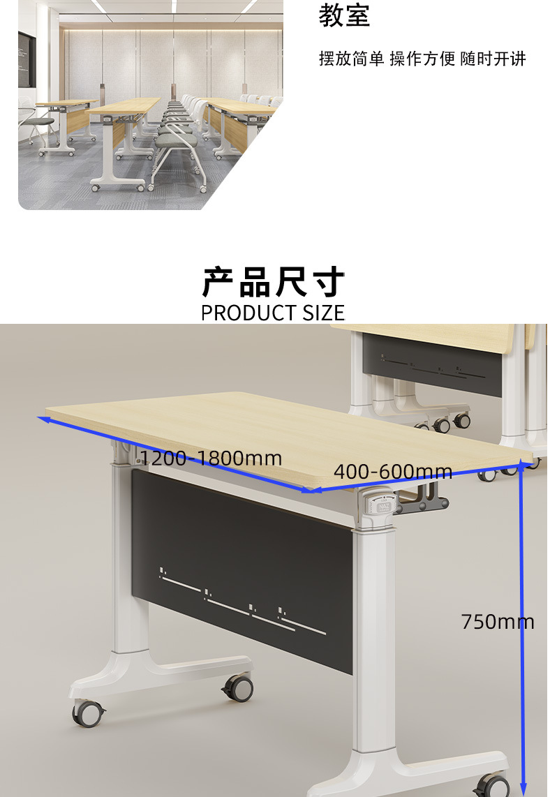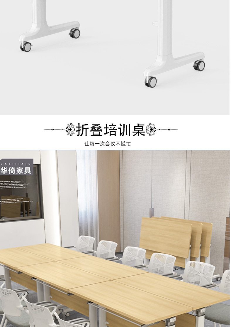 折叠拼接培训桌可移动会议桌翻转桌椅教育机构组合带轮侧翻办公桌