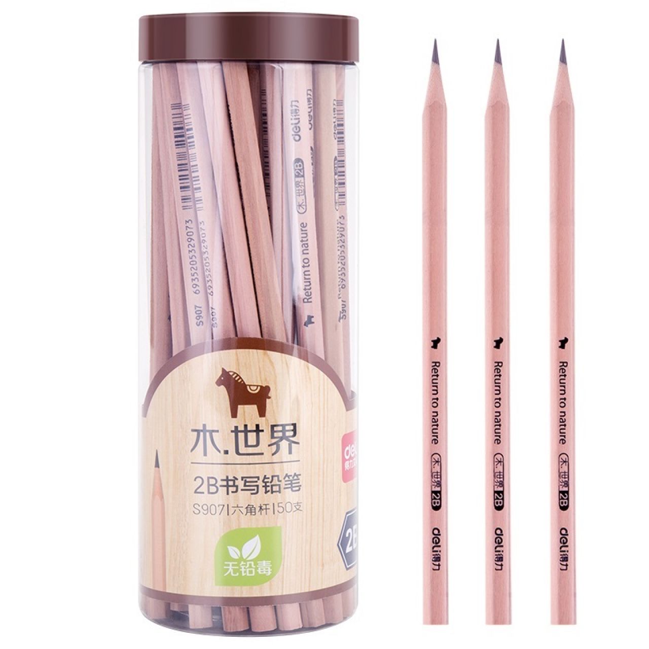 得力 S907 原木色 无擦 木杆铅笔 2B 50支装